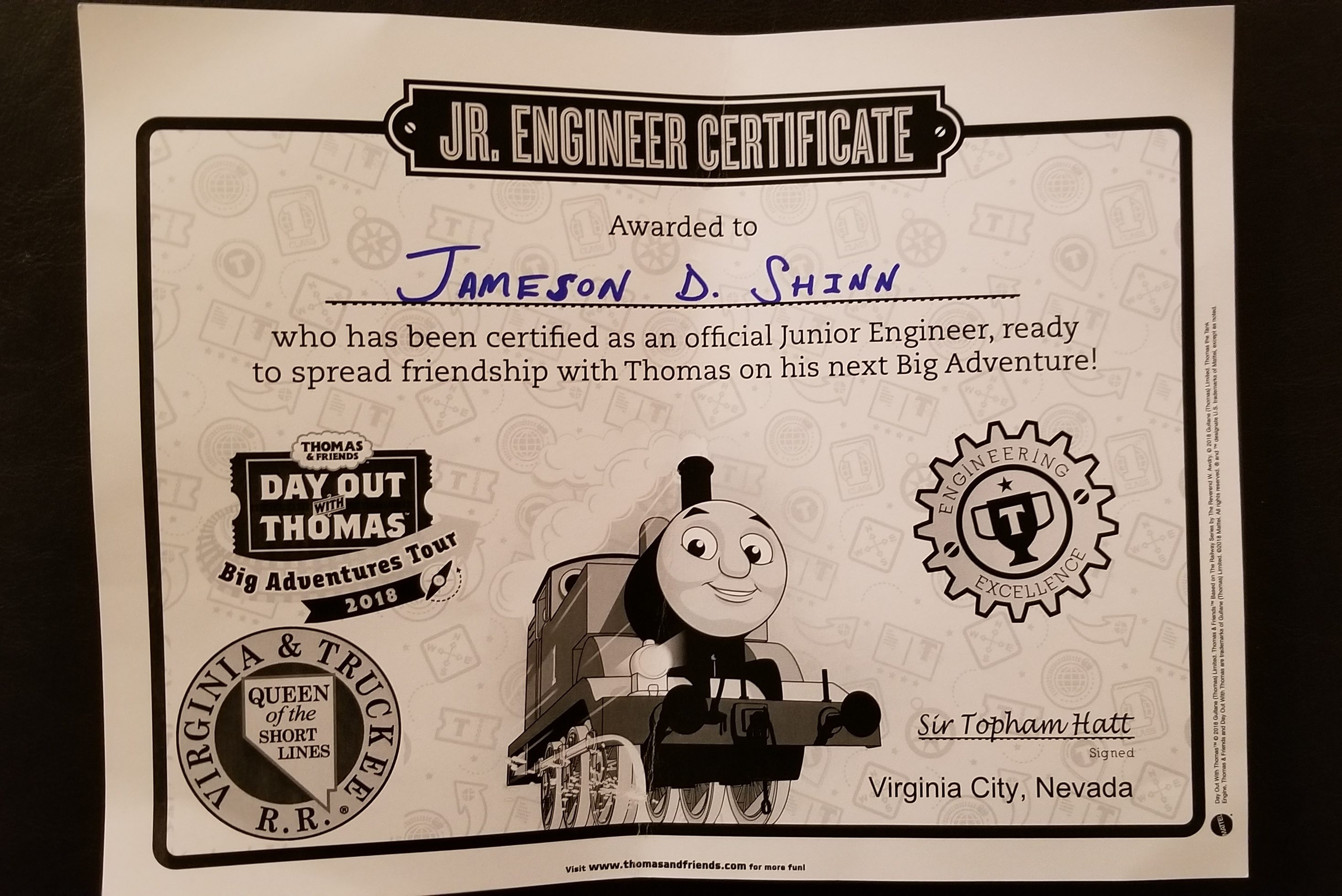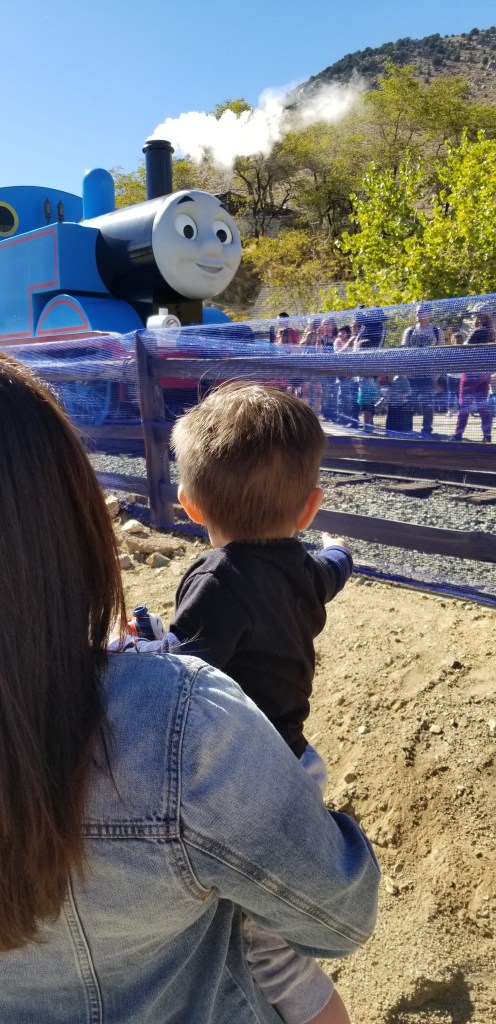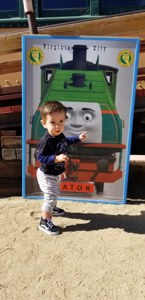 My son Jameson is now 13-months old, and I’ve learned this is the exact age when a young boy develops a full-blown love affair with vehicles: cars, trucks, planes, and trains. Every large transportation vehicle he sees is currently a “truck” (his favorite word), and “trucks” of every kind litter my living room: an ATV, a police car, a pickup, a bulldozer, and a tractor. Some of them he rides; some of them he makes a little “vvrrrrr” sound while he maneuvers them over the top of the ottoman. Without question, Jameson is awestruck by transport vehicles. One vehicle that has recently caught his undivided attention is the classic Thomas the Tank Engine. My wife introduced Jameson to Thomas through Youtube videos, and he is mesmerized. So when we heard the Virginia & Truckee (V&T) Railroad in Virginia City was hosting A Day Out with Thomas: Big Adventure Tour 2018, we knew we had to go.